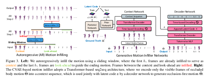 - 가려진 바디 모션 \(\widetilde{\Theta}^i\)를 인필링하여 완전한 body motion \(\widehat{\Theta}^i\)를 생성